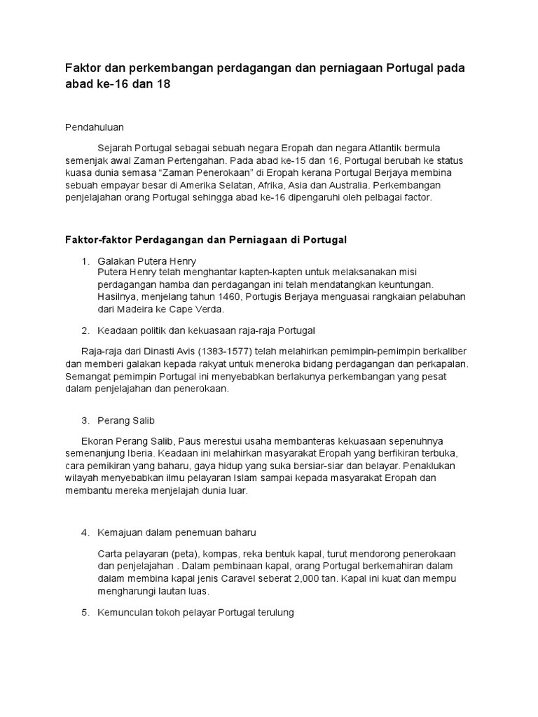 Faktor Dan Perkembangan Perdagangan Perniagaan Portugal Pdf