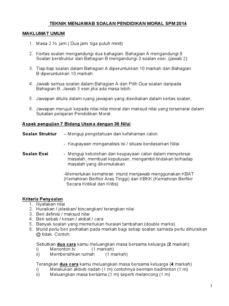 Teknik Menjawab Soalan Pendidikan Moral Spm 2014 Pdf