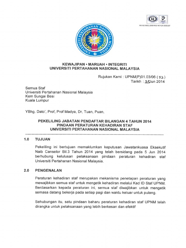 Arahan Penting Universiti Pertahanan Nasional Malaysia Upnm