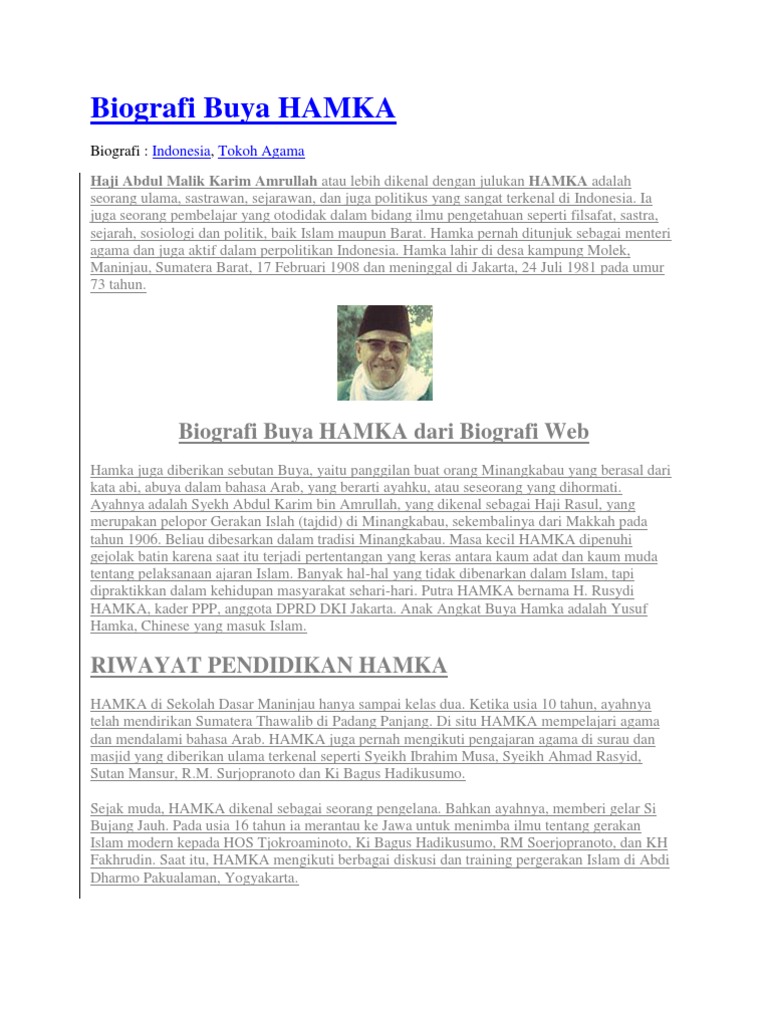Biografi Singkat Buya Hamka Sejarah Latar Pendidikan Pemikiran
