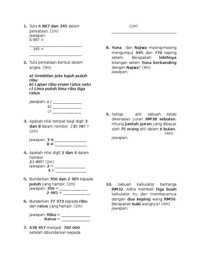 Soalan Matematik Tingkatan 1 Pdf