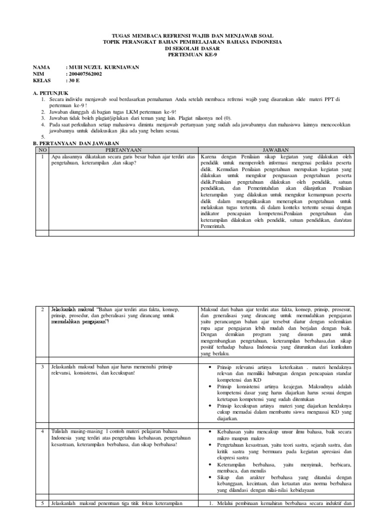 9 Tugas Bahasa Indonesia Pdf