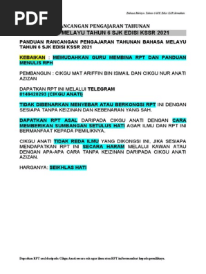 Rancangan Pengajaran Tahunan Bahasa Melayu Tahun 6 Sjk Edisi Kssr 2021 Pdf