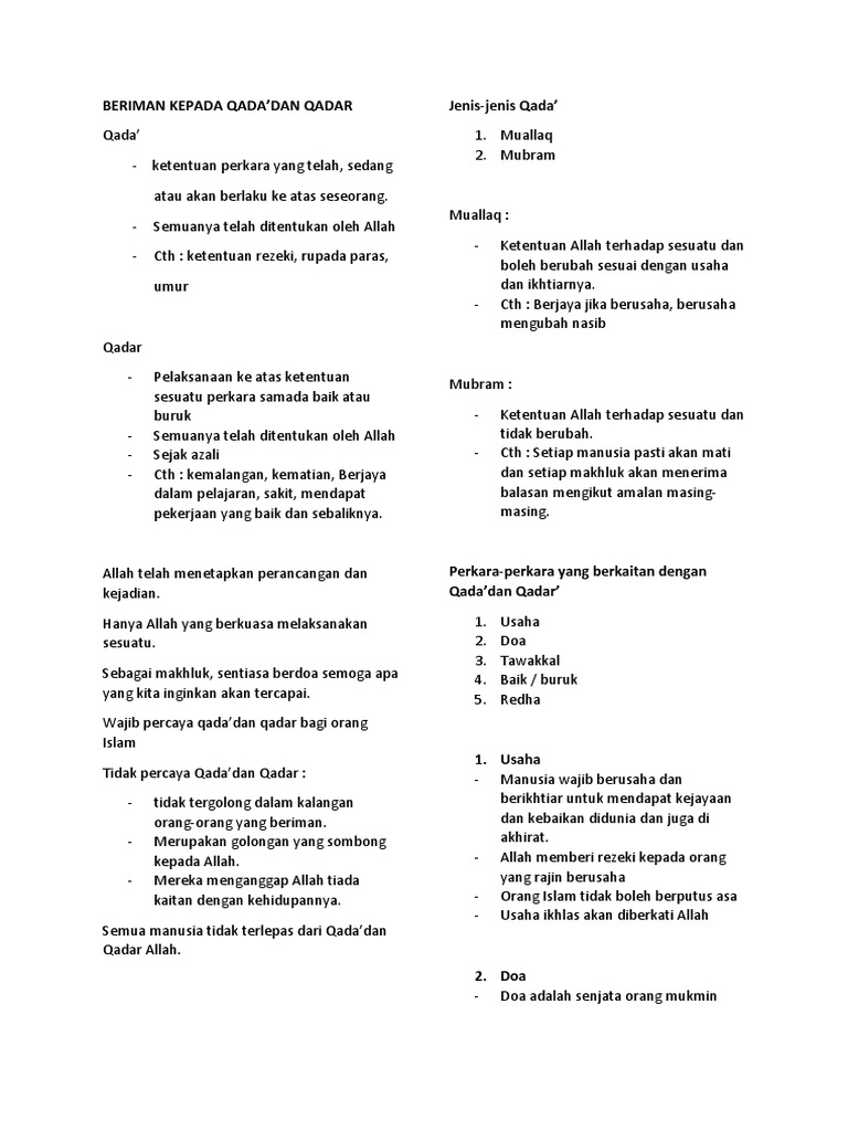 Jenis Jenis Qada Dan Qadar