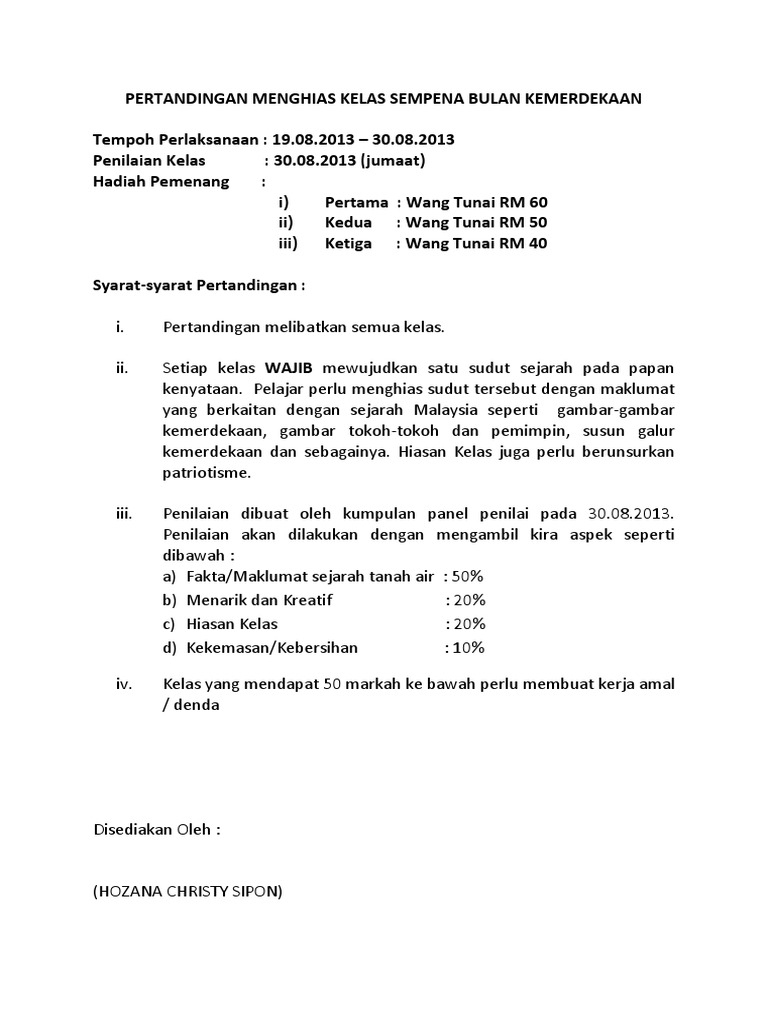 Pertandingan Menghias Kelas Sempena Bulan Kemerdekaan Pdf