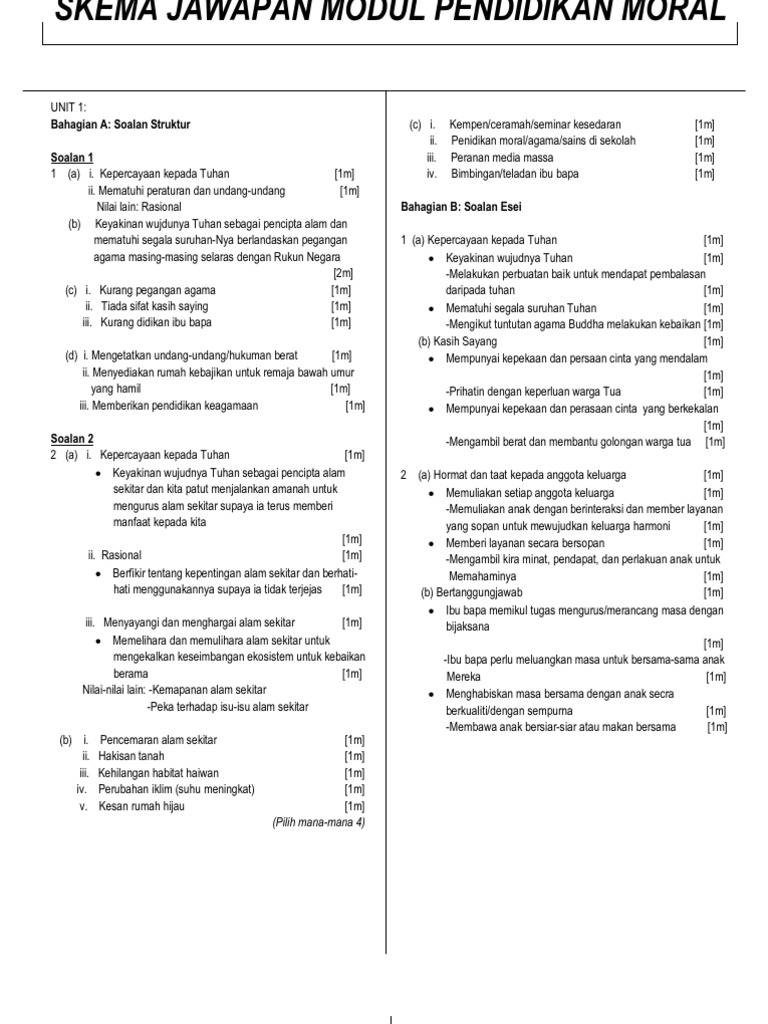 Skema Jawapan Pendidikan Moral Percubaan 1 2015 Pdf